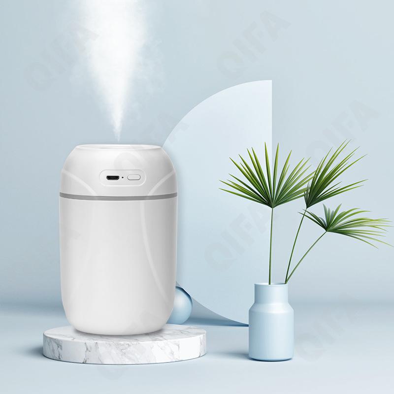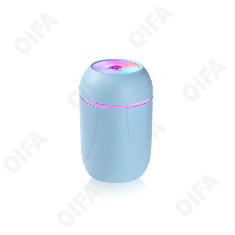 1.Верхний долив воды 2.Тип воздухоувлажнителя:ультразвуковой 3.Максимальный уровень шума:36 дБ 4.Подсветка корпуса 5.Емкость резервуара-0.3L 6.Количество режимов работы-2 7.1 сопла 8.12 часов работать может беспрерывно
